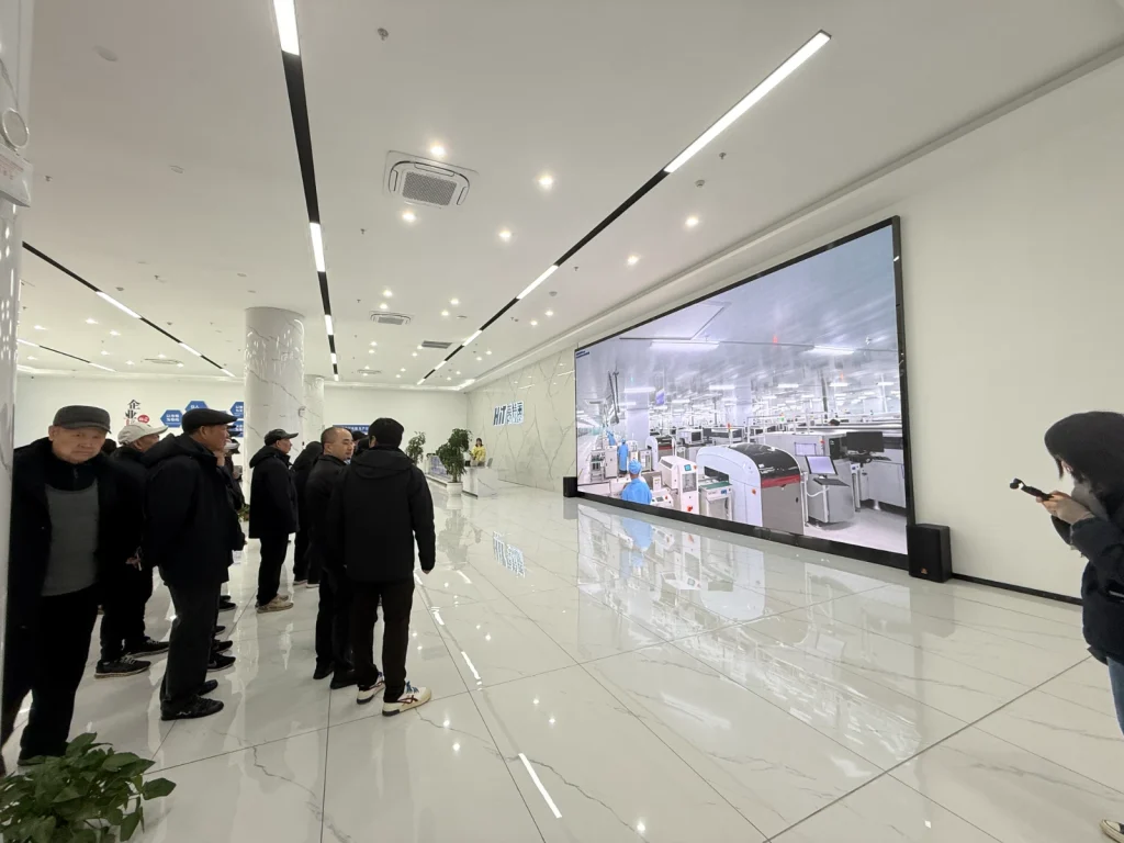 随后观看的企业宣传片,影片生动呈现了湖北英特丽从初创团队到国家级专精特新企业的蜕变历程,重点展示了全自动SMT生产线、数字化MES管理系统。一位老同志感慨:“你们把‘中国制造’的工匠精神落到了实处!”